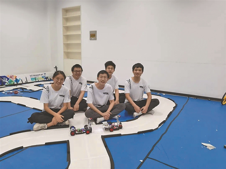 疫情期间,没有赛道,她就跟队友一起设计然后用广告布打印出来铺在家里调车,没有摄像头杆就用筷子代替,没有合适的灯光就手持台灯移动补光……返校后,他们通宵达旦在实验室里调试,“临近淘汰赛的时候,我们双车通信的效果一直不好,特别绝望,没想到有一天调试到凌晨三四点的时候,突然灵光一现,问题终于解决了……”回想起“绝处逢生”的那一刻,刘悦至今仍激动不已。