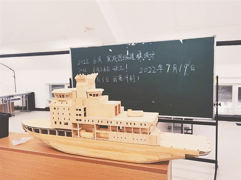 微信名为联合学院七楼船工的同学在暑假“造”了一艘船。“从6月完成图纸建模设计,然后开始动工造船,终于在暑假完成了雪龙二号大船模型!切下一根根木条,精细到毫米的尺度,一点点地搭上每一根木条,仿佛自己真的亲身经历了一次造船,深刻了解了船的尺寸、结构以及各种工艺设计的原理,将所学知识应用于实践的感觉真的很不错!”