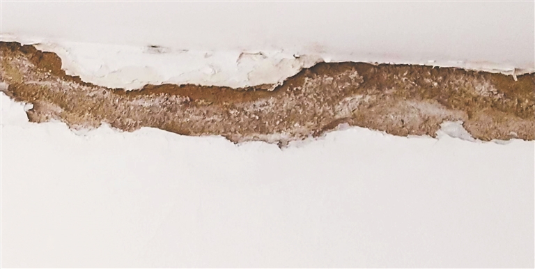 “大概4年前,家里漏水的问题开始严重。每年一开春,房顶的积雪开始融化,我家就开始漏水。滴滴答答就像下雨。后来,漏水越来越严重,墙体都被浸湿了,我回家一开灯,灯泡就忽明忽暗,并且噼啪响。我只能把电闸拉了,生怕发生火灾。”马先生无奈地说。