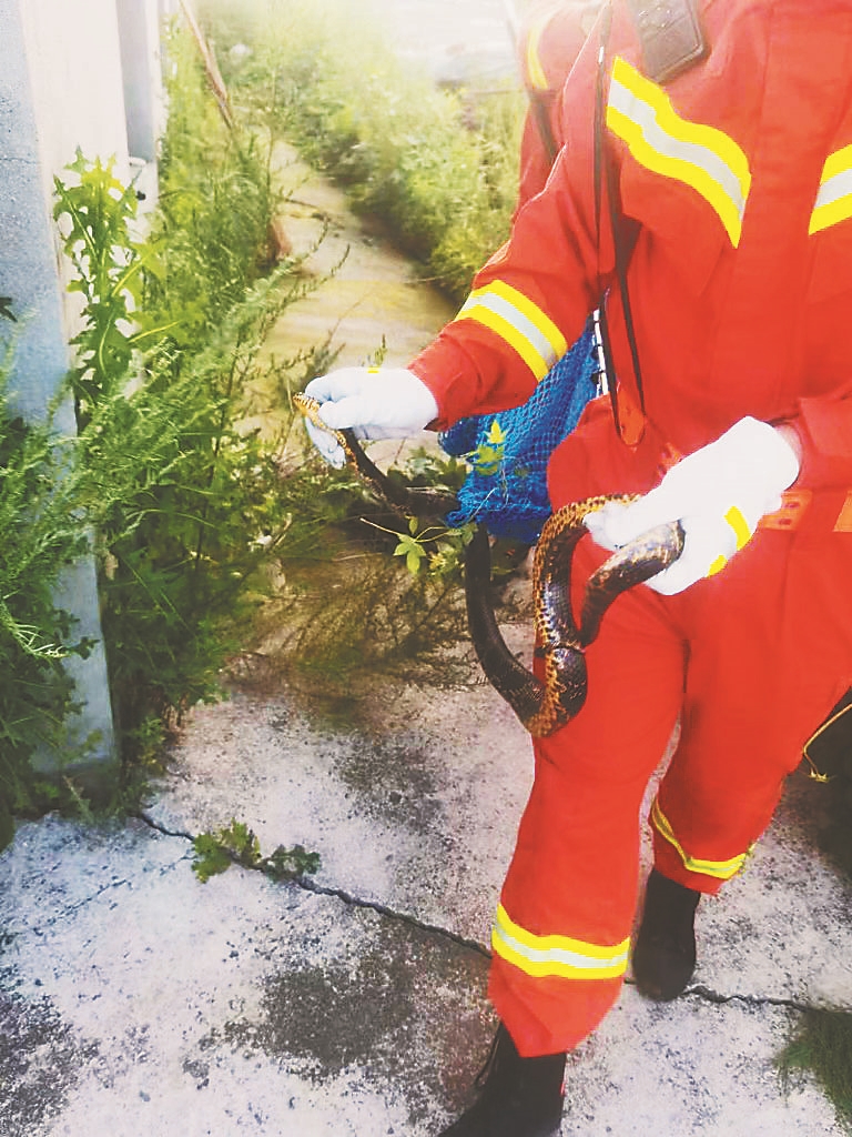 生活报讯 (记者肖劲彪) 25日16时14分,哈市香坊区东长林子一农户家报警称,有蛇进入室内,请求帮助。向阳派出所民警和消防员赶到后成功捕捉并放生。