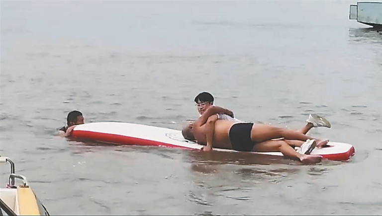 14时许,还是在水警码头附近,一位带着浮漂的老人以仰泳的姿势,顺着江水快速朝码头栈桥方向漂来。金玺发现情况后朝老人大声喊:“快换蛙泳姿势,把身体翻过来!”老人有气无力地回应:“没有力气了,翻不了身了。”几名民警连忙在栈桥上抓住老人,之后迅速找来救援桨板。最终,金玺和同事戴树滨以及其他民警合力救援,将老人拽到了岸边。