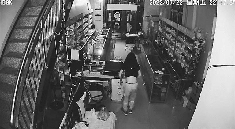 23日6时许,绥东边境派出所接到辖区某药店老板吕某报警,称昨晚店内被盗。民警立即出警,通过调取店内监控,发现22日22时39分一男子用铁棍将药店大门撬开,进入店内盗取600余元现金。通过走访调查,该男子当晚去过绥东镇某网吧,后因没带身份证离开。针对这一状况,民警认为该男子有可能再次到该网吧上网,于是民警在该网吧附近蹲守。