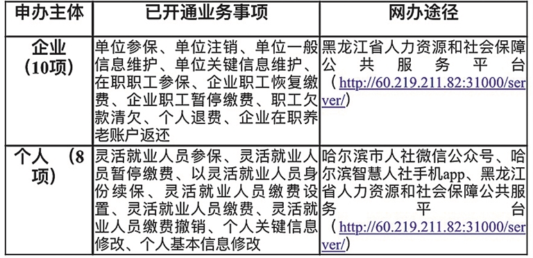 一、能网办尽网办。参保单位登录省人社公共服务平台(网址http://60.219.211.82:31000/server),办理已开通的业务事项。参保群众可使用“哈尔滨市人社”微信公众号、下载“哈尔滨智慧人社”手机APP,享受快捷网办服务。