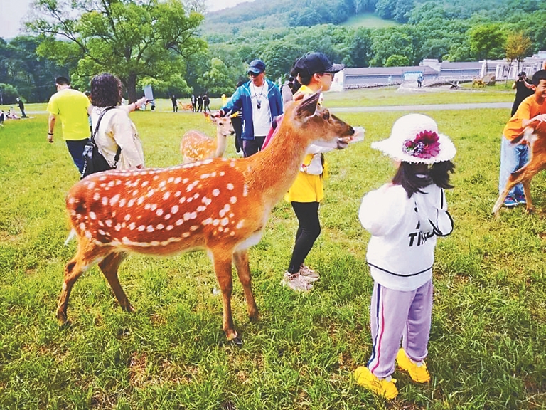 都说“林深时见鹿,海蓝时见鲸”。这里,不必踏足深林,鹿就在咫尺之间。它们,非常亲近人,常围绕在你身边,冲你讨讨食、拱拱嘴、甩甩尾巴……可爱的样子,像极了撒娇的情侣。