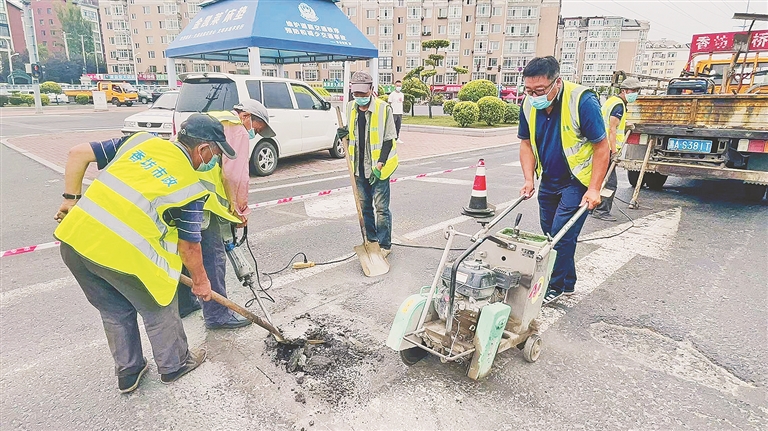 高温对作业工人“不友好”,却对路面维修很有利,利于作业区域内稳固接缝等工序的顺畅开展。“准备工作就绪后,我们第二天会将沥青铺在坑槽内,沥青基本是180℃左右,那就意味着我们作业时,周围的温度起码在100℃以上。”马家君告诉记者,高温作业时,他和同事们一天最少要喝4斤水,脖子上降温的毛巾都能被烈日烤干了,“最多的时候,一天要维修5条街路,要是遇到路面脱皮严重的,一条路就要处理5处坑洼区,但为了市民顺畅出行,也值得啊!”