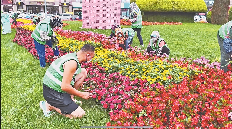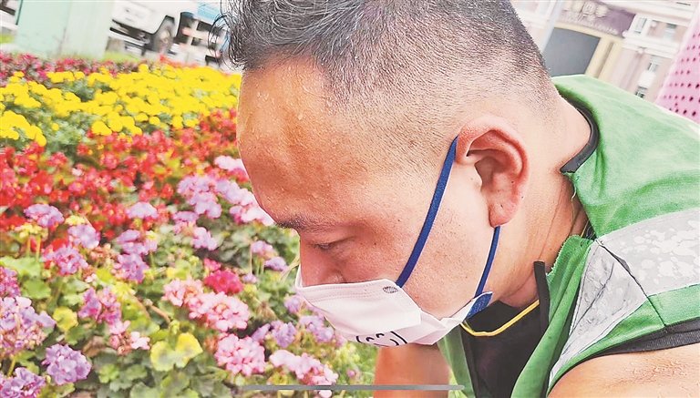 园林工人 长袖长裤加帽子 多热都要“全副武装”
