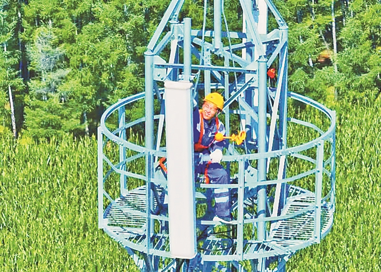 2日8时40分,记者一行来到哈牡客专第072号基站院内看到,中国铁路哈尔滨局集团有限公司牡丹江电务段鸡西西高铁通信车间鸡西西作业工队工长潘玉龙已经穿上工服,在工友的辅助下,开始攀爬这座45米高的信号塔。
