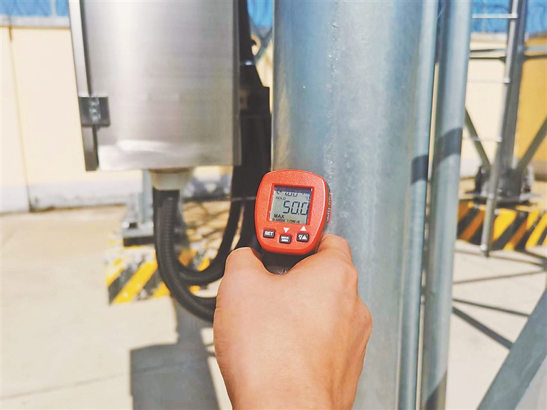 “我们的塔越往上爬,晃动会越明显,每爬一段,需要把安全绳固定好。”潘玉龙下塔后,马上喝掉了一瓶矿泉水,还要往头上浇点。“主要检查方位角、缆线是否破损等,确保高铁信号通畅,一天能爬两到三次。有一次夏天中午上塔,当天高温,爬到60米的塔顶时,体力消耗比较大,连续作业二三十分钟后,身体出了大量的汗。比地表温度热得多,下来之后有点中暑的症状。”潘玉龙告诉记者。