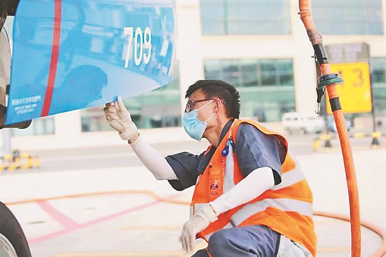 邱阳告诉记者,机务保障部的机务人员需要在过站航班抵达前15分钟到岗,进行机位适用性检查。夏季高峰期,他们每天要保障过站航班近200架次,其中半数都要由本场的机务人员按照过站工单上的内容为飞机进行详细检查,“过站工单一般都有四五页检查内容,每一条、每一项都要仔细审查。”邱阳说。