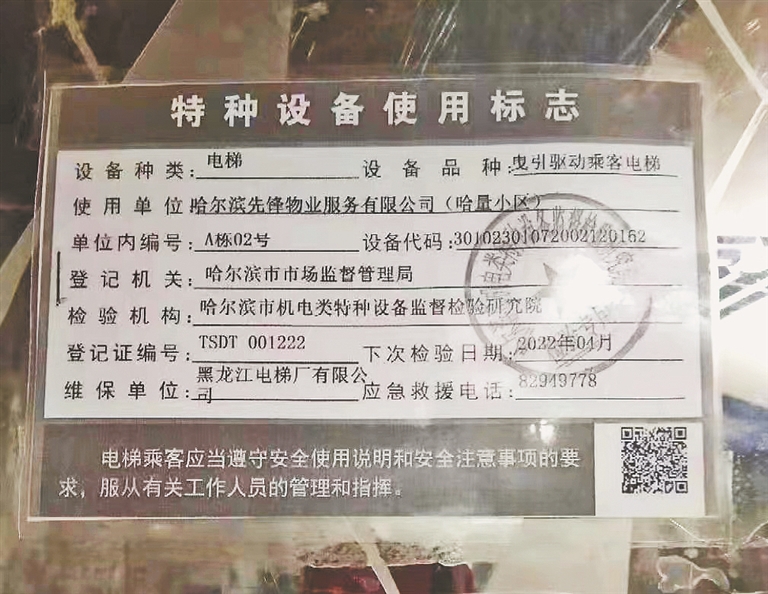 对于居民提出的年检问题,张经理表示:“今年6月刚刚进行过年检。”当居民想看年检报告时,张经理则表示:“稍后会提供。”但截至记者发稿时,没有见到该检验报告,哈量高层小区A03栋的电梯仍未修好。