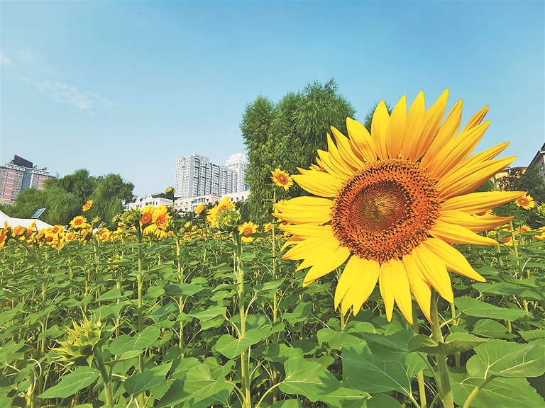 生活报讯 (记者李丹文/摄) 近日,哈市儿童公园向日葵正值盛花期,朵朵葵花汇成的金色海洋,像一张张笑脸,吸引着游人前来赏花游玩。