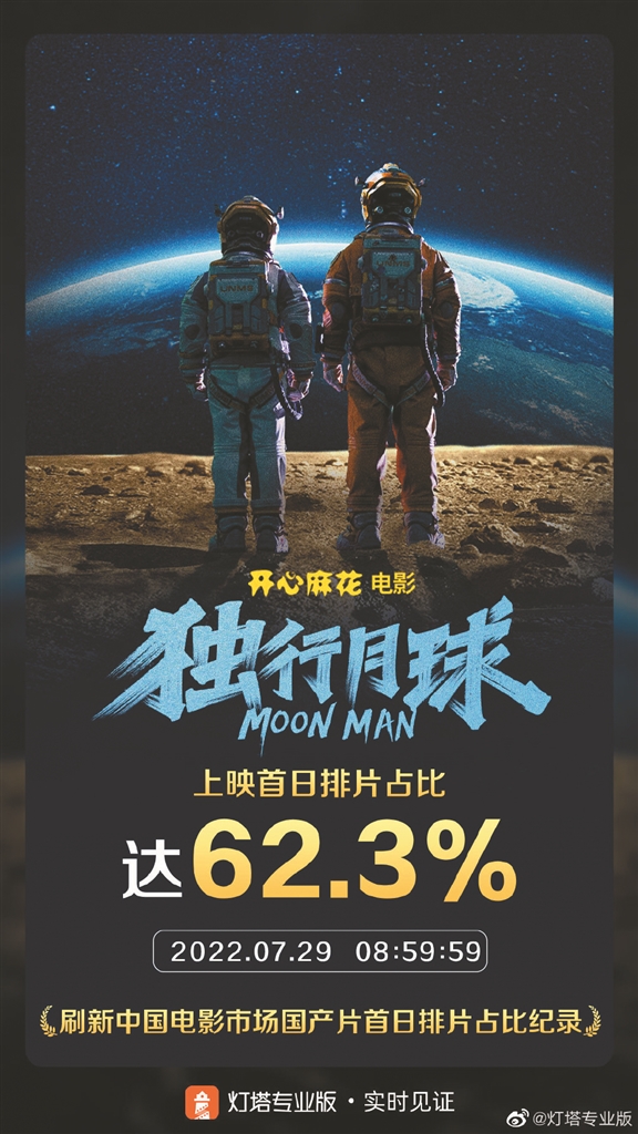 生活报讯(记者 王雪莹)生活报记者从金安国际影城获悉,开心麻花科幻喜剧《独行月球》七夕档全国总票房突破5000万,总场次29.9万,总人次128.0万。其中,《独行月球》票房为1730.7万,好口碑持续发酵,不少冰城观众感叹:“真的太解压了!”