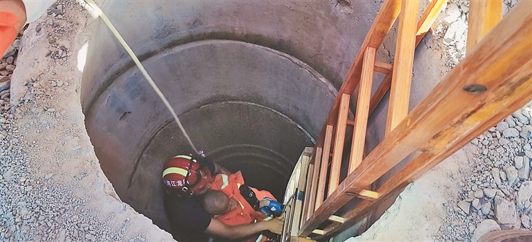 消防救援人员抵达现场后,对现场进行侦查得知,1名儿童意外坠入人行道排水井中,被困井底,井深约6米,救援人员与儿童沟通后,明确儿童意识清醒。为防止发生突发情况,救援人员根据现场情况立即实施救援,由一名救援人员使用6米拉梯深入井内,将升降绳索绑在半身吊带上,并把半身吊带套在儿童身上对其进行保护。16时10分,落井儿童从井底被安全抱出,移交给现场120急救中心。