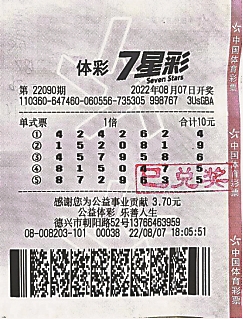生活报讯 (于正)8月7日,体彩500万元大奖出自七星彩游戏,当期全国仅开出1注一等奖,花落江西上饶德兴市。