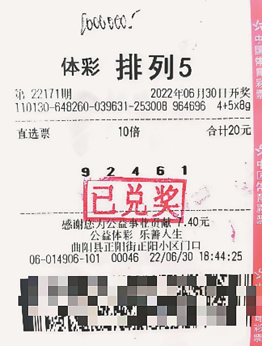 吴先生是位资深购彩者,几乎每天都会投注排列5。6月30日,吴先生“感觉”特别好,买了一注10倍的排列5游戏。令他没想到的是,这次真的中了,他买的排列5号码中了10倍一等奖,奖金100万元。
