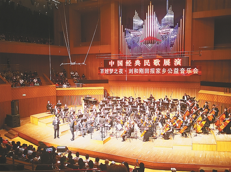 游子归乡,当晚的刘和刚激动又感动。《儿行千里》《乌苏里船歌》《走上这高高的兴安岭》《拉住妈妈的手》……一连串金曲都深藏着自己对家乡的眷恋和热爱。“我出生在齐齐哈尔市拜泉县,无论走到哪里,我的根始终在黑土地。无论离开多久,我最难忘怀的都是家乡情。这场音乐会,既是向家乡人民的汇报,也是老中青少几代艺术家的聚首。我希望通过音乐,用一首首广为传唱的中国经典民歌,向父老乡亲们致意。”