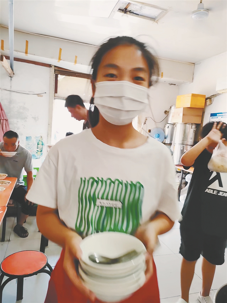 从天津回来后,高菲就借住在姑姑家或者奶奶家。“我家有一个堂姑姑开了早餐店,从初二回老家起,只要放长假或者周末作业不多的时候,我就会到她开的早餐店去打工,主要是收拾碗筷、刷碗、擦地。”高菲告诉记者,给的钱虽然不多,但是够她自己零花了,不用再管父母要钱,而且还能锻炼自己。