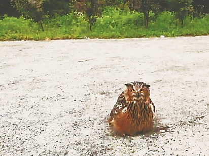 民警骆子洋向记者介绍“经过现场判断该大鸟应该是猫头鹰,我们对其进行保护性措施后放归山林。”