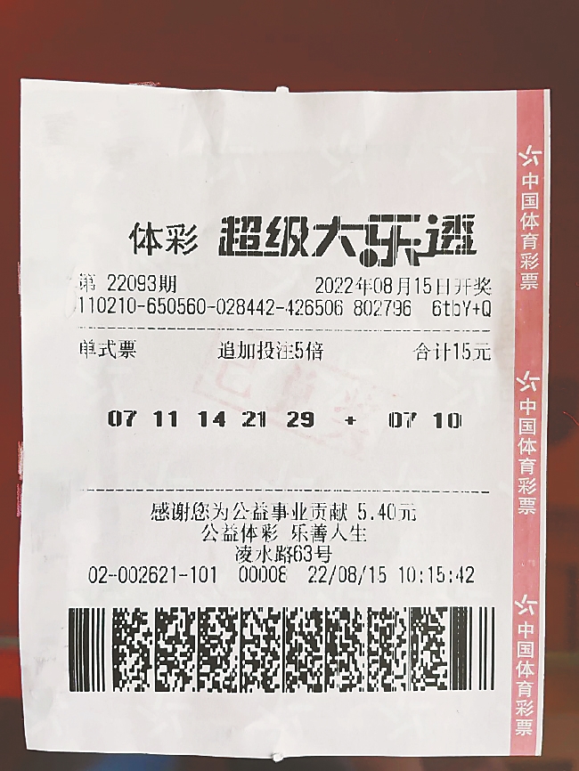 15日,体彩超级大乐透第22093期前区开出号码“07、11、14、21、29”,后区“07、10”。李先生凭一张5倍追加单票精准命中追加一等奖5注,单票擒奖合计5563万元。