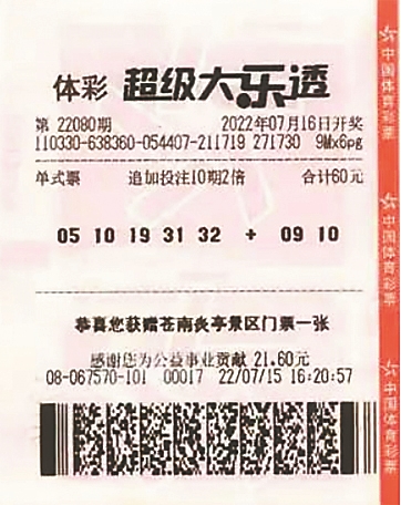 这次帮钱先生赢得大奖的,正是他守了6年的1注号码,票面是一张60元10期投注2倍投的1注单式追加票。“我平时就喜欢守号投注,这注号码也是坚持守了6年。这么多年最多就中过两三百块的小奖,这次终于有所回报了。”