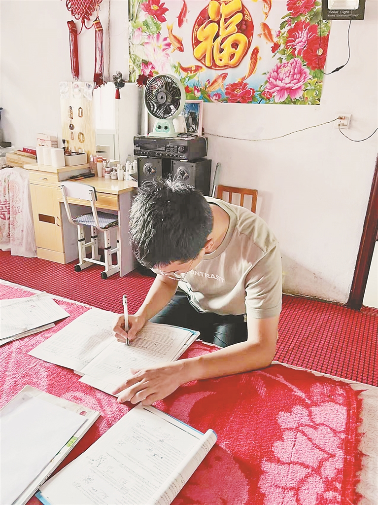 村里的平房,收拾的干净整洁,床上铺满的书显得格格不入,原来床就是赵士博的“学习桌”,“我家只有饭桌和一张被我妈当成梳妆台的小桌子,我平时学习都在床边。”赵士博告诉记者,他从初中起就在床边学习已经习惯了。