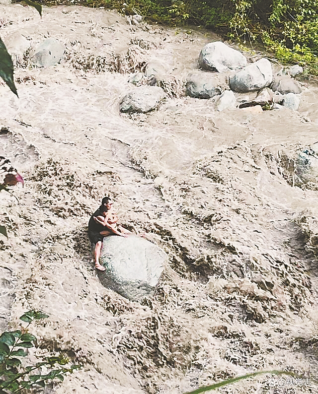 山洪中一对父子的遭遇尤为让人揪心和痛心。当时孩子爸爸用后背挡着洪水,尽力保护孩子,做出了将孩子往岸上抛的动作,可坚持了大约15分钟后,两人都被水冲走了。最终父亲获救,儿子却还是不幸遇难。