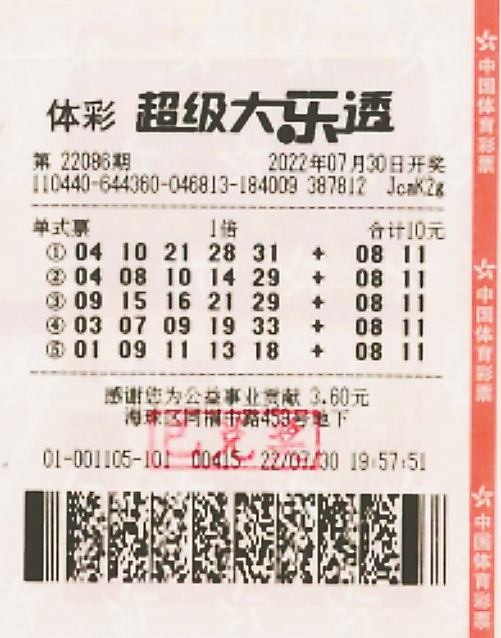生活报 (雪尘) 日前,广州市海珠区一位购彩者中得超级大乐透第22086期一等奖,奖金754万。