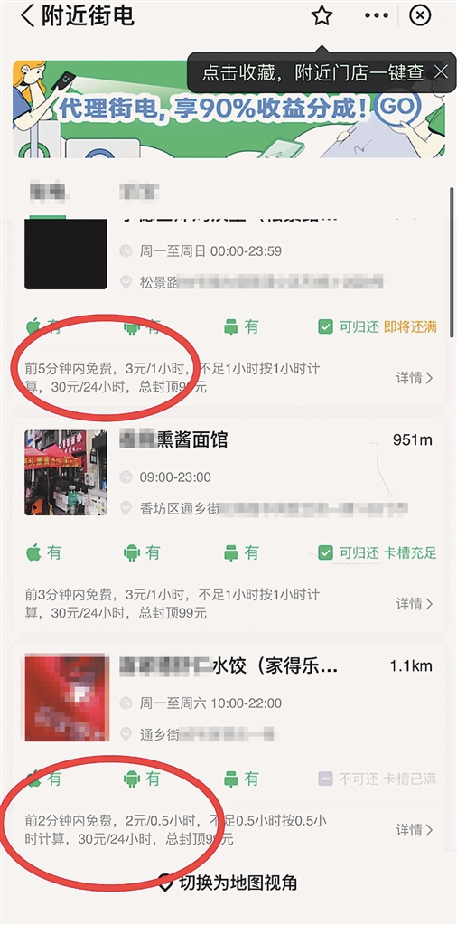 生活报记者在香坊区民生路附近的几家商超和饭店内了解到,店内原本设置多台共享充电宝点位,现在早已撤架。一位知情人士告诉记者:“共享充电宝行业竞争激烈,很多品牌的推广人员,会以各种形式将其他品牌的充电宝断电、断网等,导致无法使用。因为归还时存在各种问题,用户被延时扣费,还会存在和店铺发生矛盾的情况,因此很多点位不再提供该项服务。”