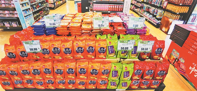 生活报讯 (记者梁晨文/摄) 中秋佳节临近,一年一度的月饼销售高峰已揭开帷幕,各大超市、商场内月饼售卖专区的商品已琳琅满目。为推动治理过度包装乱象,倡导“厉行节约、反对浪费”,从今年8月15日起,我国实施了新发布的《限制商品过度包装要求 食品和化妆品》国家标准第1号修改单。