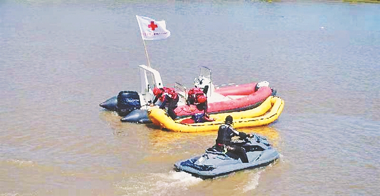 生活报讯 (实习生孙静盈 记者栾德谦文/摄) 23日上午,2022黑龙江省红十字应急救援队夏季综合演练暨黑龙江省红十字应急救援队水上训练基地授旗授牌仪式上,省红十字水上应急救援队根据各模拟场景,迅速展开并上演了机动艇救援行动,运用动力救生艇、摩托艇、大型救生浮具等专业设备,进行了动力艇O型救援、摩托艇S型机动救援、快艇机动高速救援、快艇拖挂救生浮具救援等高难度科目的实战演练。
