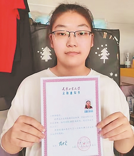 齐齐哈尔的兰琦琦,三岁时父亲病逝,母亲外出打工,她和姥姥相依为命。高中时,她就利用假期打工补贴家用。今年她以525分的成绩被天津工业大学录取。