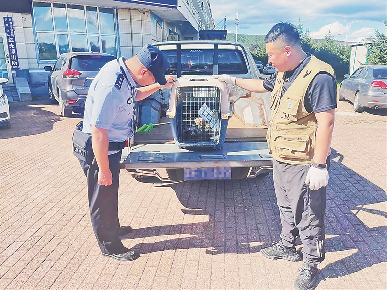 因关先生所居住的小区位于伊春市伊美区北侧,距离北山仅几公里远,民警猜测这只小动物可能是在附近的山上生活,不知什么原因跑到居民区,碰巧关先生家是一楼正在装修,这只小动物就跑进去躲了起来。民警立即联系了伊春野生动物救助中心,并与居民共同将这只小动物“抱”上了警车,带回派出所。