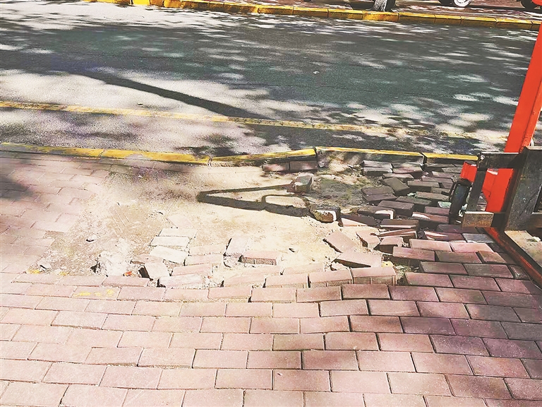 记者在现场了解到,此处为人行道一处坡形区域,经常有车辆途经,碾压后步道板出现破损等情况。“晚上经常出行的人知道这里有破损,不知道的可能会崴脚。”附近市民说。哈市城管局工作人员表示,会沟通相关维修人员进行修复。