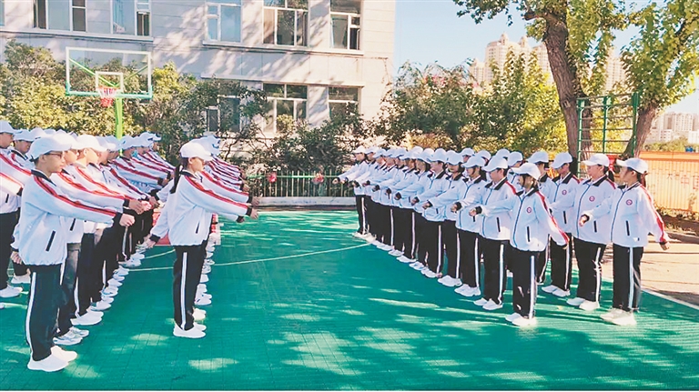 哈尔滨市第九中学校:同学们在“流血流汗不流泪”的军训精神感召下,在一声声发自内心的坚持中,认真严格地落实每一个要求,稍息立正、停止间转法、敬礼礼毕、摆臂训练,一个个看似简单的训练动作,往往要重复上百次上千次。