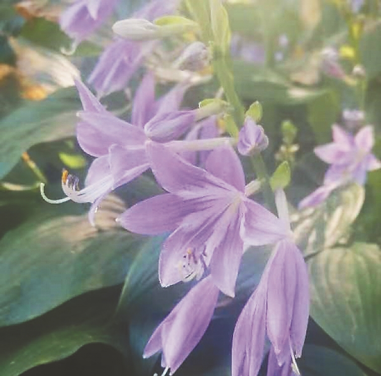 “临风玉一簪,含情待何人。”这句诗形象地描述了紫萼玉簪的美。植株从宽大碧绿的叶丛中抽生出串串的紫色花序,绽放出形似喇叭的花朵,有如大家闺秀一般。