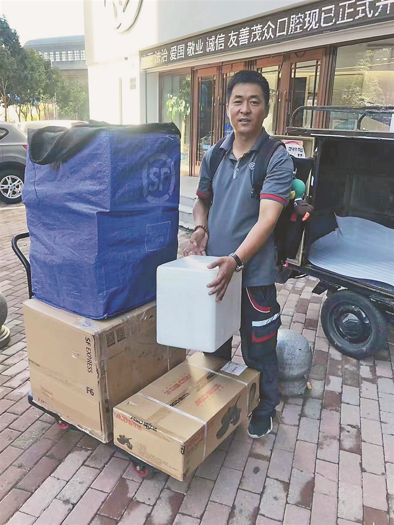 “有我家的快递吗?”“一会儿别走啊,我家蒸包子呢,给你拿几个。”……小区里,居民们不停与曹士旺打着招呼。“送这个小区7年多了,10个业主里有9个认识我,现在上班像串门似的。”