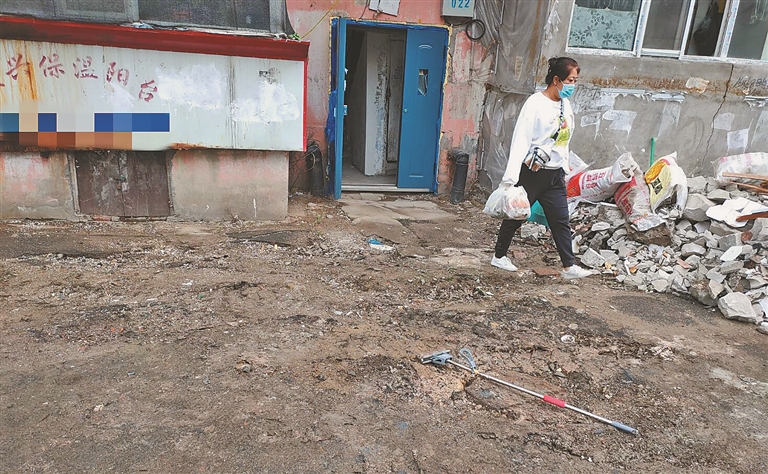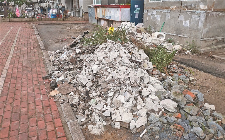 生活报讯 (记者李威兵文/摄) 29日,有冰城市民向生活报记者反映,南岗区清明七道街29号院内单元门前的下水井周边都是脏物,还有很多建筑垃圾,居民出行不便。