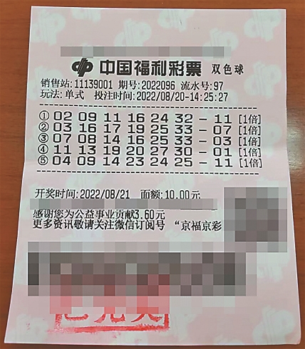 21日晚,福彩双色球第2022096期开奖,当期全国中出50注一等奖,单注奖金533万余元,北京地区购彩者揽获其中46注一等奖,总奖金2.45亿余元,均出自房山区燕山迎风南路17号11139001的福彩销售站。