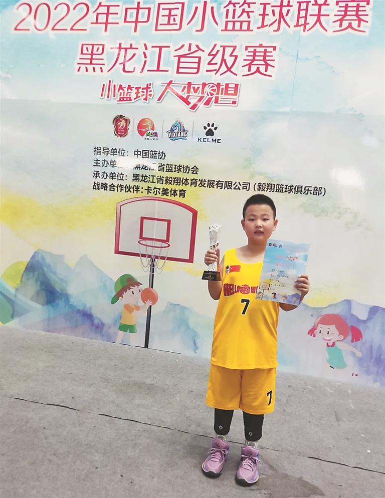在这个夏天,我先后参加了2022年中国小篮球联赛莱飞跃赛区预赛和黑龙江省级赛。比赛的时间是下午,我却迫不及待地选择了提前3个小时到了赛场,在比赛的气氛下我异常兴奋。时间一点点接近,“集合、热身”教练喊道,当天一共是3场小组赛,我是本次比赛年纪最小的球员,我坚信我可以,助攻、抢断、盖帽、篮板、得分,我总是觉得场上的时间过得太快,小组赛最后以2胜1负的战绩以小组第二名出线。在决赛上,队友们都奋力拼搏,一次次地倒地、拼抢、对抗,比赛输了,我选择了放声哭泣来发泄我的情绪。