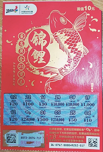 据了解,8月22日晚,张先生和妻子到家信生鲜超市购物,看到里面有一家体彩即开票销售点,一时来了兴致。张先生是位资深购彩者,一直保持理性购彩的好习惯:每次刮票金额从不超过20元,要是10元面值的即开票,就刮两张,要是5元面值的即开票,就刮四张,这次也不例外。当他刮到第二张“锦鲤”即开票时,发现自己中了25万元大奖。