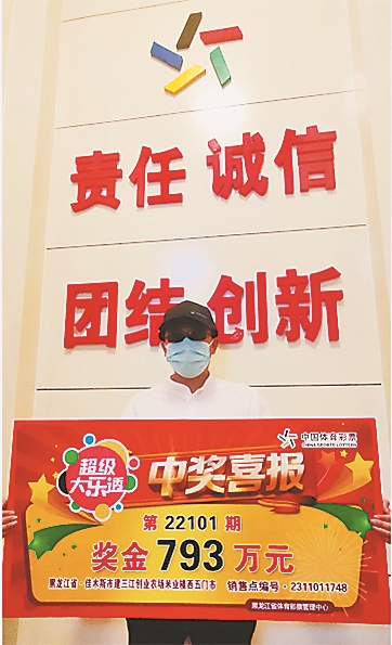 生活报讯 (张伟) 3日,位于佳木斯市建三江创业农场米业楼西五门市的2311011748体彩销售网点喜中超级大乐透22101期一等奖,中奖彩票是一张“8+2”的复式票,共计中得奖金793万元。