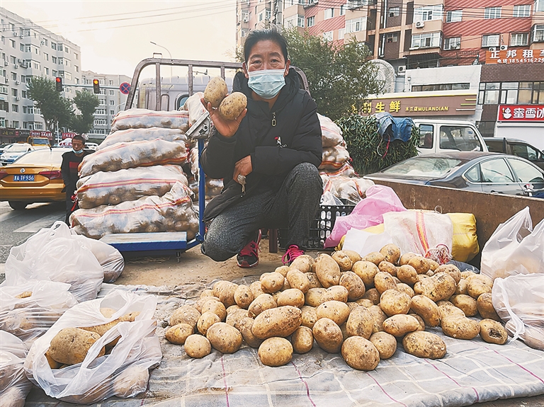 家住道外区太平镇的李娜,今年和丈夫是第四年来售卖土豆,为了能够在早市上卖个好价钱,李娜一般凌晨就从家出发,带着新鲜的土豆来到哈市南岗区一匡街早市售卖。由于李娜热情,还给购买百斤以上土豆的居民配送,日销万斤对于她而言很轻松。“我这个土豆是好品种,个头大、品质好、放得住,适合秋储,老客户都知道,每年都到我这里采购。”