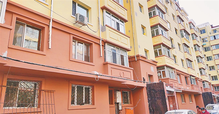 生活报讯 (记者李威兵文/摄)8日,哈市市民通过本报热线反映,南岗区阳光绿色家园小区旧改施工快要结束了,大部分脚手架已经拆掉,但有些地方的雨水管却只装了半截,居民担心下雨会造成墙体渗水。