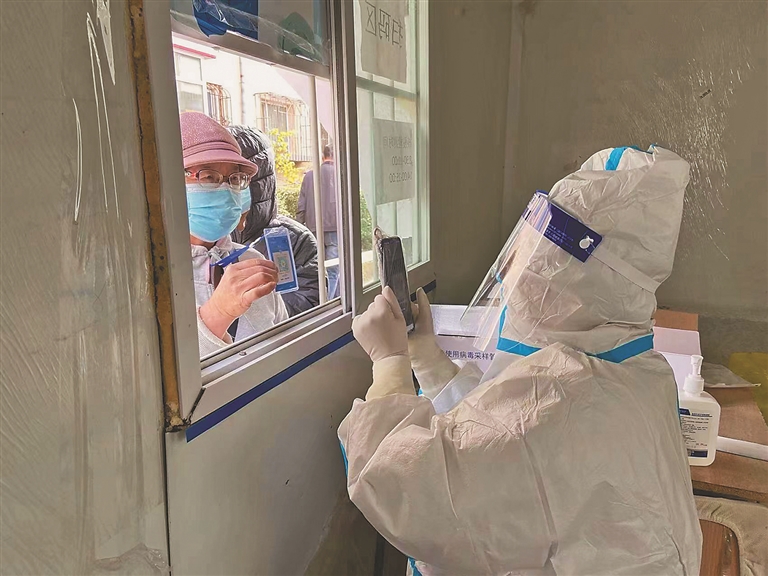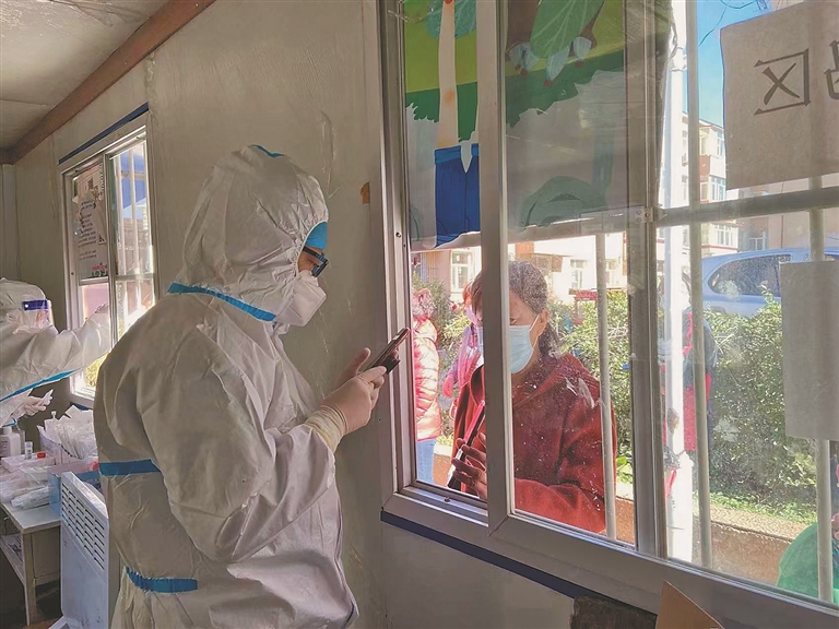 以尽责之心,行防疫之路。跨区往返上下班两个小时是李云静每天工作的常态。家住香坊区的她,在得知社区志愿者人数不足的情况后,主动下沉到兴建街道,虽然路途遥远,但丝毫没有动摇她参与防疫的心。最早要6点钟到岗,这就意味着她5点左右就要从家出发,这对于两个孩子的妈妈而言,困难可想而知。李云静承担着上海新村社区扫码录入、维持秩序、服务居民、化解矛盾等各项工作。她和上海新村社区网格员刘晓丹、张景贤组成小分队,“请提前打开健康码”“请按点位站好,保持距离”,一次次的重复提醒,一句句的暖心提示,为兴建街道核酸检测工作注入了温暖的力量。