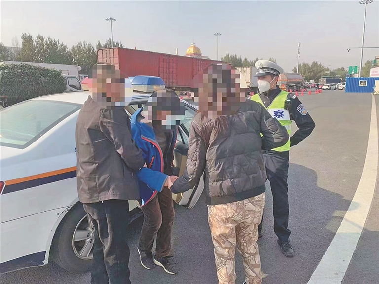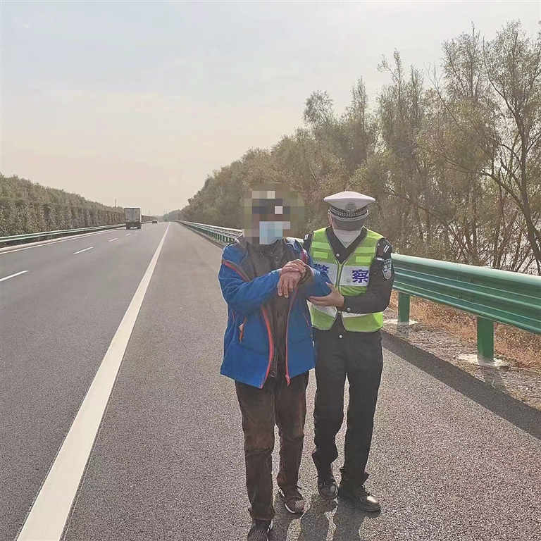 接警后,五中队民警立即赶往现场。就在寻人过程中,指挥中心又接到一女子报警,称自己85岁的父亲在高速附近走失,请求帮助。综合情况研判,走失老人很可能就是高速上的行人。12时35分,民警在环城高速四方台大桥附近发现了老人,当时他正在高速公路快车道中间徘徊,非常危险。