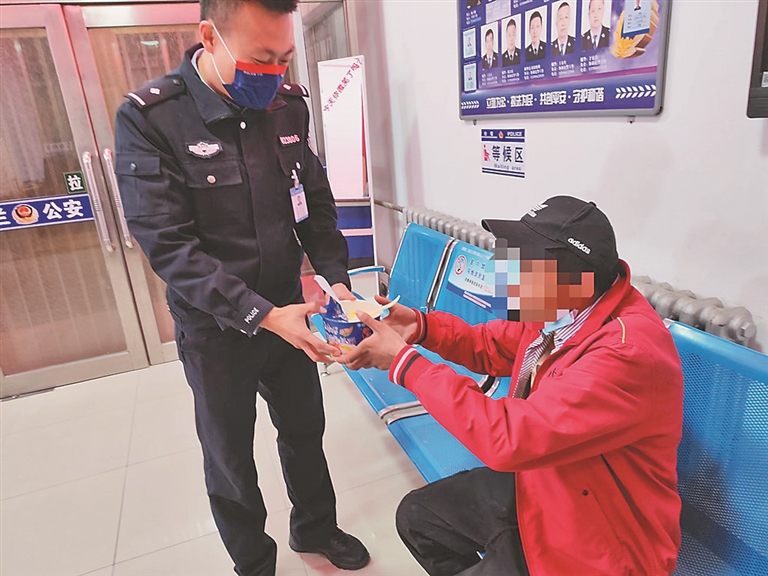 10月7日晚,方台派出所接到辖区村民报警称,在村口发现一名男子在徘徊,情绪反常。接到报警后,民警刘犇、梁振远迅速出警并找到该男子,在交流中民警发现,该男子言语逻辑混乱、精神状态不佳,只说自己迷路了,走了一天水米未进。
