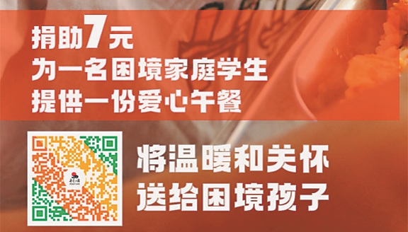 生活报讯 (记者李丹) 恰逢黑龙江省希望工程开展30年之际,生活报联合黑龙江省希望工程捐助中心、黑龙江省青少年发展基金会,10月13日起发起“情暖童心爱心午餐”公益活动,捐赠平台每收到7元爱心款,即可帮助省内农村、城镇留守儿童及困难家庭的学生购买一顿营养午餐。即日起,活动召集爱心人士、公益志愿者、爱心团队共同助力,捐赠数目上不封顶,最少为7元,更欢迎爱心企业组队参与。让我们携爱汇聚,呵护留守儿童。此外,捐赠后,还可获得电子版捐赠证书一个。