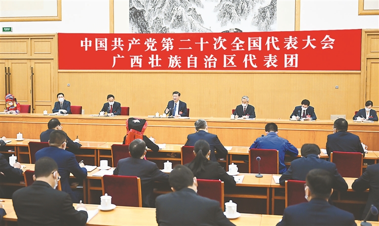 10月17日,习近平同志参加党的二十大广西代表团讨论。新华社记者 谢环驰 摄