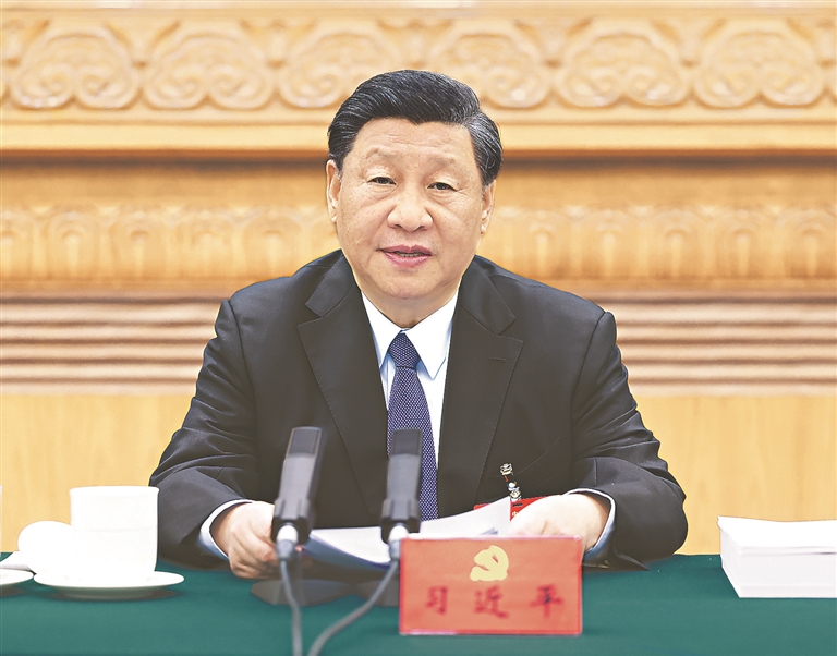 10月21日,中国共产党第二十次全国代表大会主席团在北京人民大会堂举行第三次会议。习近平同志主持会议。 新华社记者 鞠鹏 摄