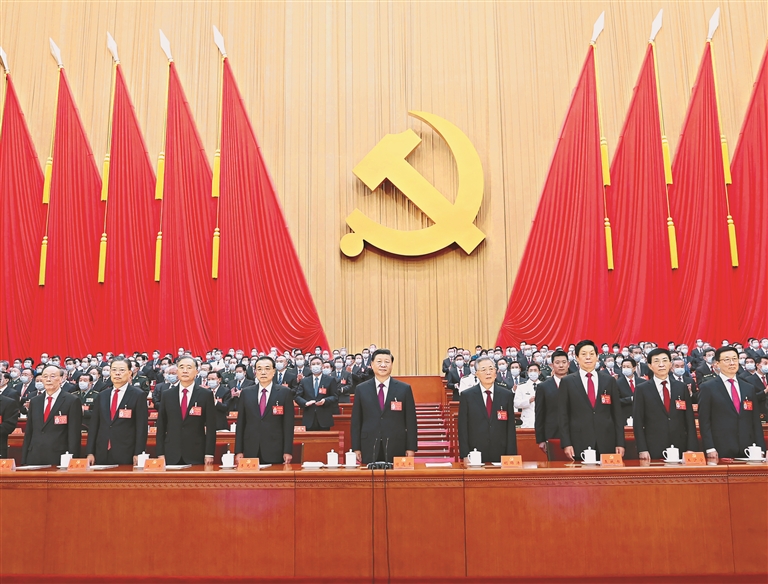 10月22日,中国共产党第二十次全国代表大会在北京人民大会堂胜利闭幕。习近平同志主持大会。 新华社记者 鞠鹏 摄
